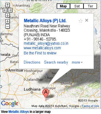 Metallic Alloys (P) Ltd. Naudhrani Road Near Railway Crossing, Malerkotla - 148023 (PUNJAB) INDIA.